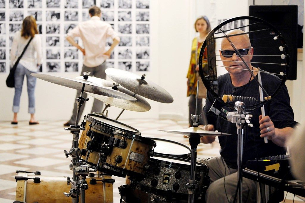 Výstava černobílých fotografií Bohdana Holomíčka. K vernisáži výstavy se uskutečnil koncert – Pavel Fajt / Bubnové plochy.