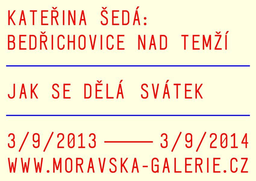 Netypická výstava Kateřiny Šedé v Moravské galerii v Brně je součástí pětiletého projektu, kterým se autorka snaží vytvořit v obci novou podobu svátku. Projekt byl zahájen před dvěma lety (3. 9. 2011) v londýnské Tate Modern pod názvem From Morning Till Night / Od nevidím do nevidím.