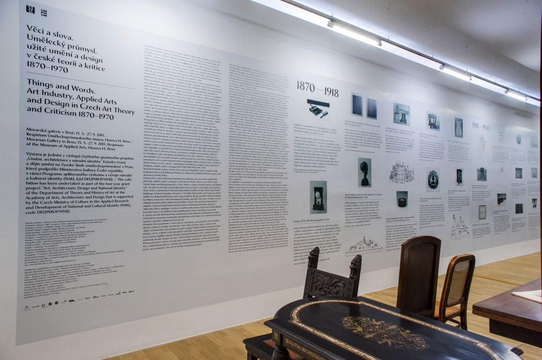 Výstavu Věci a slova doprovází stejnojmenná antologie věnovaná reflexi uměleckého průmyslu, užitého umění a designu v české teorii a kritice, kterou v roce 2014 vydala Vysoká škola uměleckoprůmyslová v Praze. Proto se výstava soustředí nejen na předmětný svět, ale také na svět idejí zprostředkovaných slovy, jež jsou s věcmi spjaty. Její součástí je třicet citátů a autentických dobových komentářů teoretiků a kritiků oboru (např. Rudolf Eitelberger, Otakar Hostinský, Jan Kotěra, F. X. Šalda, Pavel Janák, Josef Čapek, Jan Vaněk, Adolf Loos, Bohumil Markalous, Karel Teige, Bohuslav Brouk, Jan Kotík, Jindřich Chalupecký, Milena Lamarová), volně provázejících vybrané exponáty. Tyto texty v hrubých rysech odhalují proměny pojetí užitkových předmětů ve třech výše uvedených historických etapách a zároveň manifestují teoretické názory formulované předními dobovými odborníky. Název antologie i výstavy je záměrnou alternativou titulu slavné knihy Michela Foucaulta Slova a věci (1966). Soubor publikovaných textů v antologii a komentářů k výstavě má totiž být historickým dokumentem úsilí vtisknout prostřednictvím pojmů určitý řád do chaoticky narůstajícího předmětného světa. Spíše než o slohotvornosti tedy expozice vypovídá o diskurzivní povaze věcí.