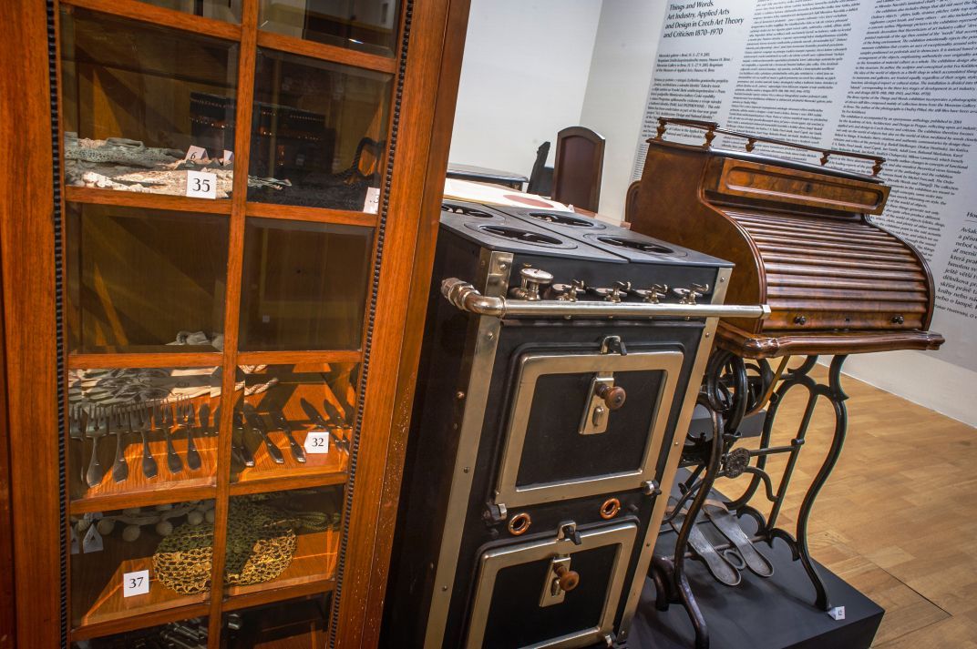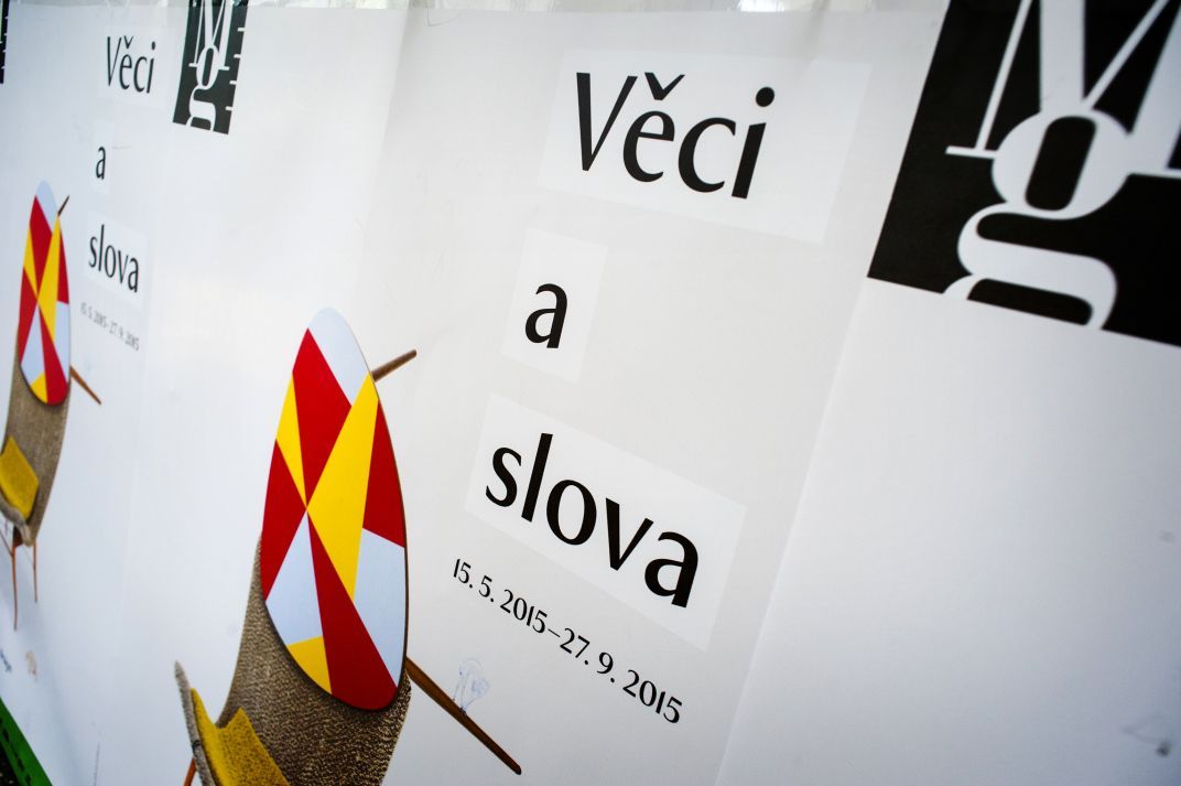 Výstava Věci a slova je sestavena z různých typů předmětů, včetně řemeslných výrobků, průmyslového designu, nábytku a textilního designu, případně módy. Jsou mezi nimi věci, které od počátku plnily paralelně dvojí funkci: měly zkrášlovat obydlí i pracovní prostředí, povznášet vkus svých uživatelů a zároveň jim sloužit - zjednodušovat a zkvalitňovat jejich životní styl. Uplatňují se zde také věci zbytečné či kýčovité, a to proto, že i pokleslý vkus a marnivost byly - a jsou - nedílnou součástí lidské kultury a silně se podepsaly na formování moderního života. Ať to byly věci luxusní nebo stylotvorné, které jsou dnes součástí muzejních sbírek, nebo věci obyčejné, sériově vyráběné a masově "konzumované", které bychom v daných obdobích našli v mnoha tuzemských domácnostech, všechny se podílely na skladbě a podobě životního prostředí. Vedle cenných muzejních exponátů jako např. židle Jana Kotěry, stolku Josefa Gočára, ručně tkaného polštáře Marie Teinitzerové, dózy Pavla Janáka, sklenic Ludviky Smrčkové, kovového stolního setu Bohumila Južniče a Ladislava Sutnara, ohýbaného kovového květinového stolku Jana Vaňka, jídelní soupravy Jaroslava Ježka, laminátových skořepinových židlí Miroslava Navrátila a dalších - dnes již ikonických předmětů - jsou v expozici zahrnuty i věci, které vrcholnou designérskou kvalitu nesplňují. Bez klasifikačního řádu se tak do výstavy přirozeně začleňují všední věci bez signatur jejich tvůrců: talíře, naběračka, cedník, džbán, stolní váha, Náprstkův šlehač na bílkový sníh, mechanický kartáč na koberce, rádio na krystal a mnohé jiné. Pouťové obrázky v expozici reprezentují kdysi všudypřítomnou výzdobu domácností, kterou teoretici uměleckého průmyslu nazvali "devocionální kýč". Dobové tiskoviny pak připomínají "slova", jimiž bylo formování životního prostředí provázeno. Výstava záměrně rezignuje na principy tradiční muzejní expozice, která kolem vybraných stylotvorných vzorků umístěných na sokl a do vitríny vytváří auru výjimečnosti. Vychází naopak z nehierarchizovaného uspořádání předmětů, které zdůrazňuje autenticitu spíše než originalitu, a vypovídá tak o formování hmotné kultury jako celku. Této struktuře odpovídá rovněž výstavní instalace. Její autorka, sochařka a konceptuální umělkyně Eva Koťátková vyšla z představy předmětného světa jako vetešnictví, v němž jsou nashromážděné věci na rozdíl od muzeí a galerií postaveny na roveň bez ohledu na jejich provenienci, styl, výrobní materiál, funkci, ideologický náboj a kulturní status. Instalace je přitom členěna na tři "ostrovy" odpovídající třem klíčovým etapám vývoje uměleckého průmyslu, užitého umění a designu (1870-1918, 1918-1945, 1946-1970).
