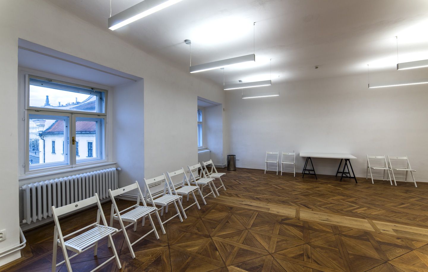 Jedinečný prostor ve 2. patře paláce s výhledem na Moravské náměstí se sochou Jošta. Vhodný pro školení, firemní prezentace, přednášky, soukromé akce.