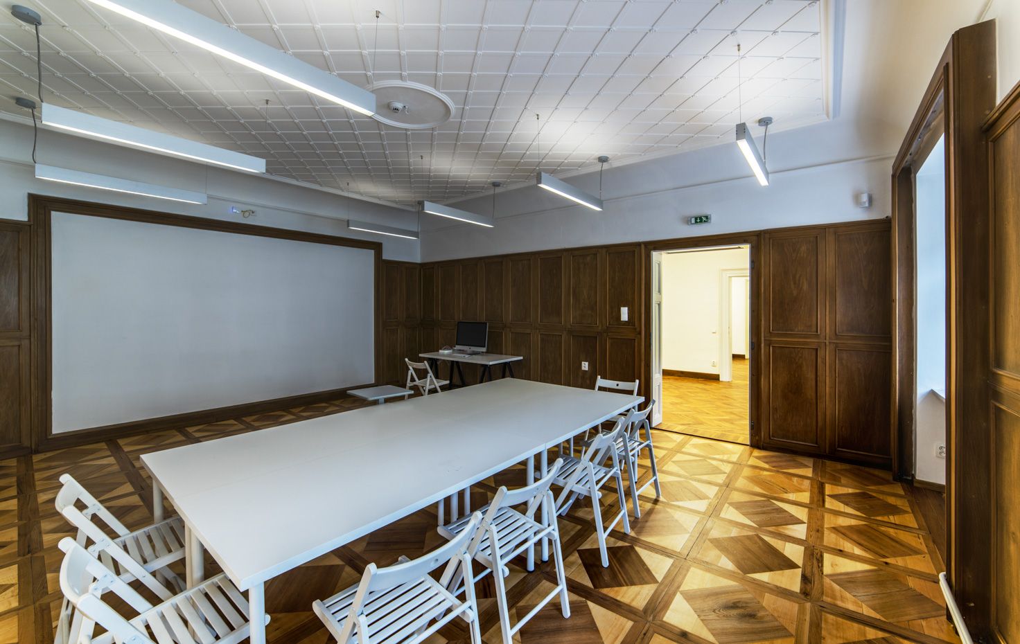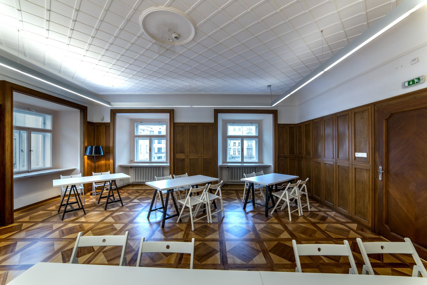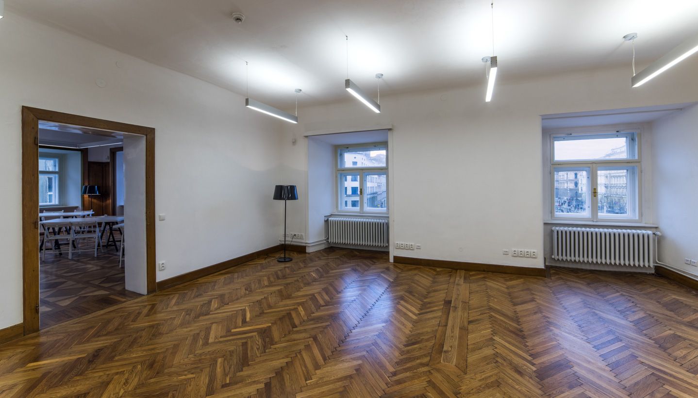Jedinečný prostor ve 2. patře paláce s výhledem na Moravské náměstí se sochou Jošta.  Vhodný pro školení, firemní prezentace, přednášky, soukromé akce.