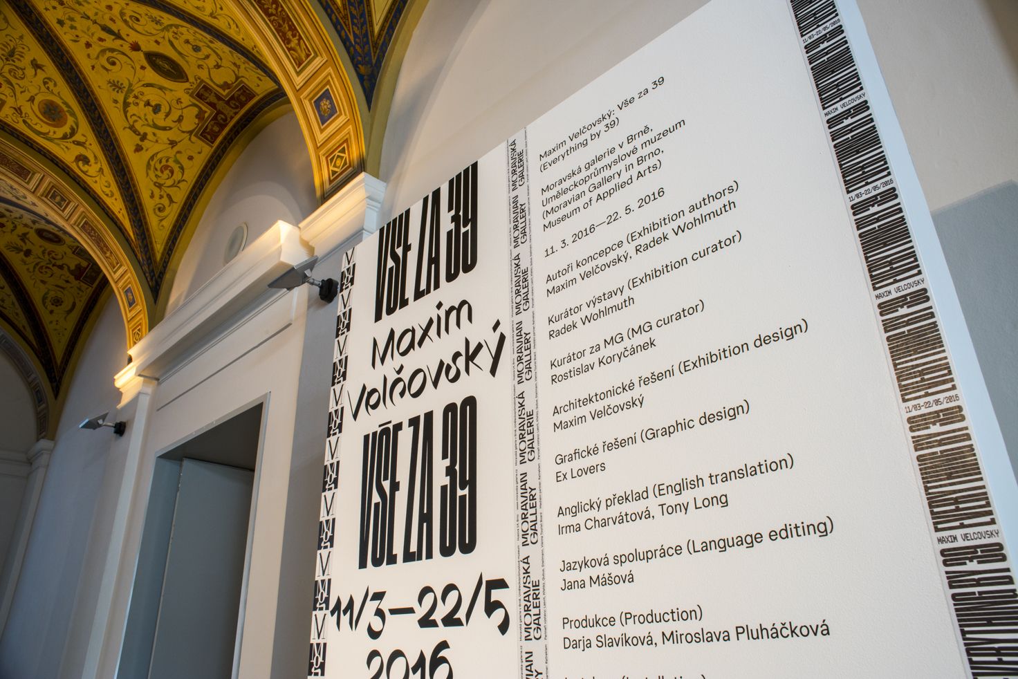 Výstava Vše za 39 poprvé komplexně představuje tvorbu jednoho z nejvýraznějších českých designérů střední generace Maxima Velčovského. Je koncipovaná k jeho nadcházejícím čtyřicátinám a její dvojsmyslný název významově osciluje mezi „mramorem“ retrospektivy a atmosférou levných lidových výprodejů. Tyto póly udávají i vizuální tón expozice remixující prostředí galerie a supermarketu.